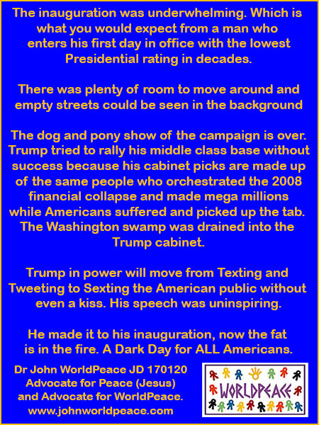 Dr John WorldPeace JD Anti Trump Commentary January 1, 2017, 2017 to September 28, 2017