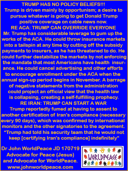 Dr John WorldPeace JD Anti Trump Commentary May 4, 2017 to August 29,2017