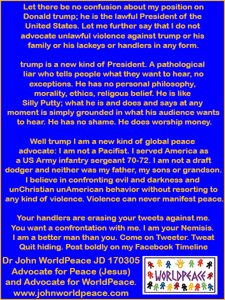 Dr John WorldPeace JD 170502 www.johnworldpeace.comwww.impeachpresidenttrumpusa.com